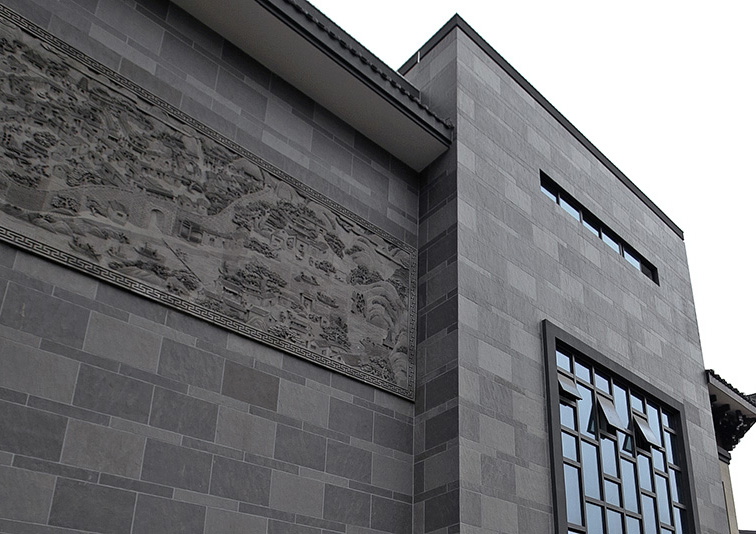 板岩具有粗砺的质感、丰富的颜色、自然的形态,吻合人们崇 尚自然的文化理念。可以说,板岩是人们回归自然、返璞归真 的心态在室内、外装饰中的一种体现,这种心态,我们也可以 理解为是一种生活文化。板岩一般适用于酒吧、别墅、餐厅等高档建筑场所,用这种石材装饰的墙面,能透出一种文化韵味和自然气息。